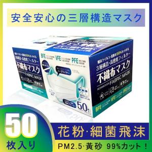 使い捨て マスク 不織布 送料無料 三層タイプ ウィルス飛沫 花粉対策 風邪対策 普通サイズ 快適 クリーン 予防 50枚入り